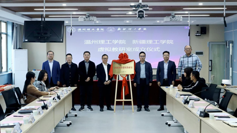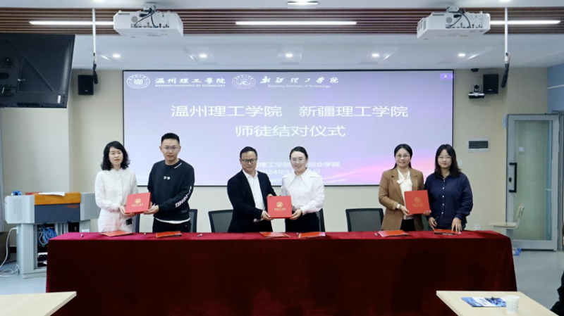 在学校教师发展中心,双方代表共同见证了温州理工学院创新创业学院与新疆理工学院创新创业学院联合成立的“创新创业虚拟教研室”正式揭牌。同时,现场开展了两校创新创业教师师徒结对仪式,温州理工学院向我校赠送由该校创业教学团队主编的《创新创业基础》教材。